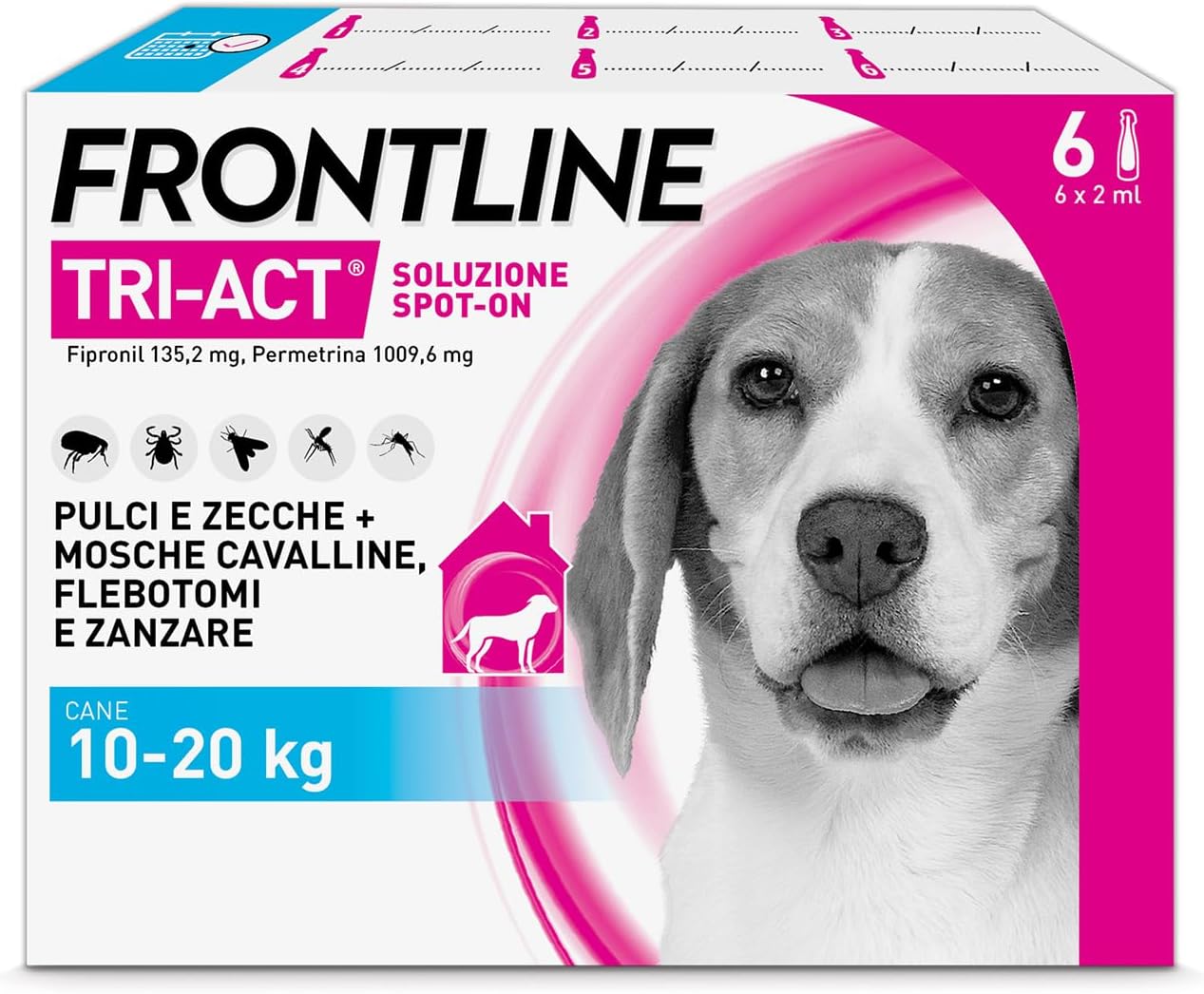 Scopri FRONTLINE Triact, 6 Pipette, Cane M (10-20Kg): Protezione completa e duratura contro pulci, zecche e insetti per il benessere del tuo cane